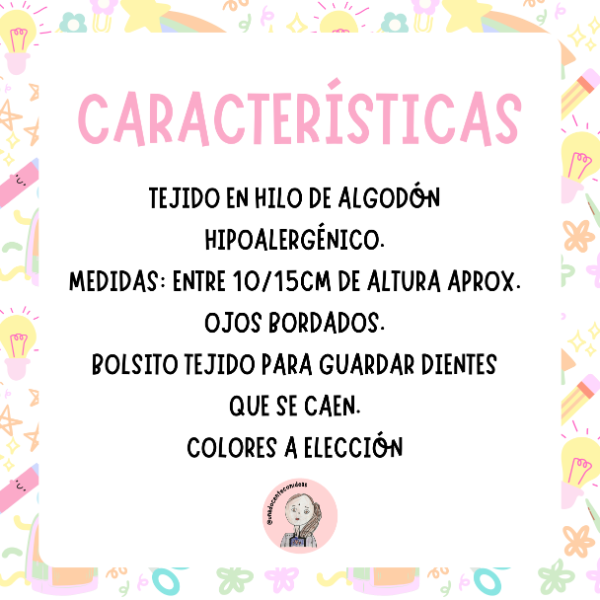 ✔ Con bolso tejido para guardar los dientes.